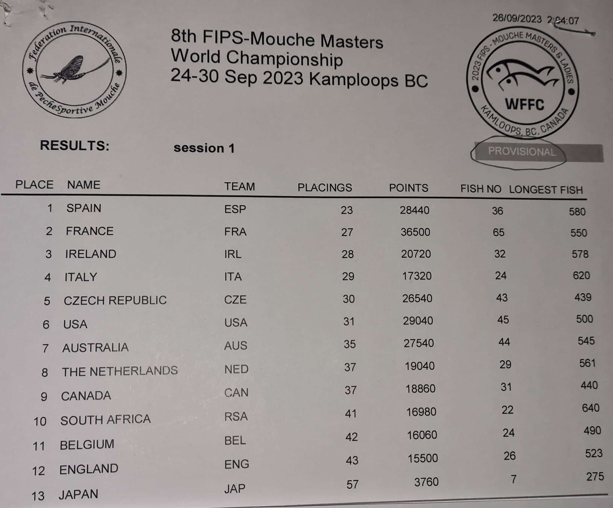Mistrovství světa žen a masters v lovu ryb na umělou mušku je v plném proudu.